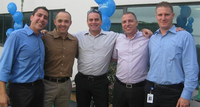 מימין: שלומי פרייס, מנכ"ל נט-אפ ישראל, אושרי שרון, מנכ"ל משותף ב-!We, ינון וטשר, מנהל השותפים העסקיים בנט-אפ, טל וייסר, מנכ"ל משותף ב-!We, ורונן נוי, מנהל מכירות ממשלה וביטחון בנט-אפ