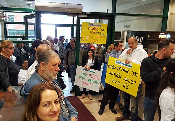 הפגנה של עובדי HOT mobile במטה החברה ביקום. צילום ארכיון: באדיבות ההסתדרות