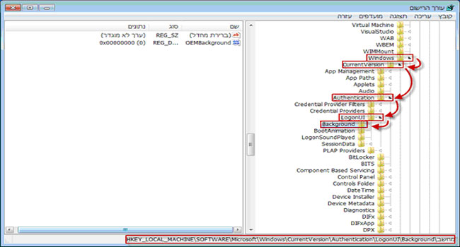 טרם נתחיל, אמליץ לכם לקרוא את המדריך כיצד לנווט בעורך הרישום.