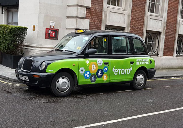העוברים והשבים ברחובות לונדון יכולים לראות בימים אלה מונית "מקושטת" נוסעת ברחובותיה, כשעליה פרסומת של החברה הישראלית eToro.