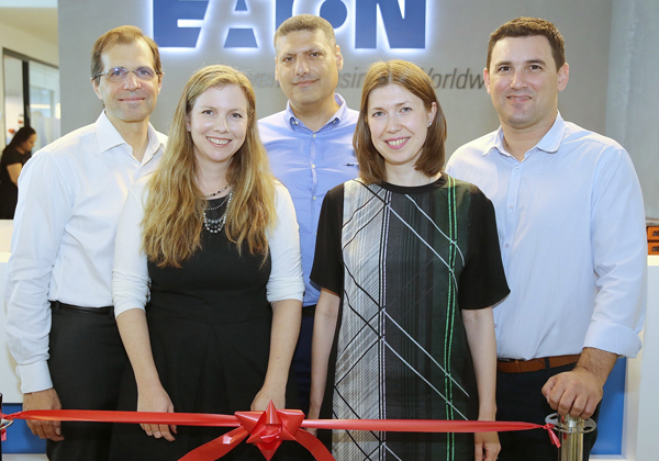 מימין: ראש עיריית רעננה, איתן גינזבורג; ורה גרישצ'נקו מאיטון EMEA; איתי צפרוני, מנכ"ל איטון ישראל; שרון חן, מנהלת השיווק של איטון ישראל; וסיריל בריסון, סגן נשיא איטון לשיווק ב-EMEA. צילום: ניב קנטור
