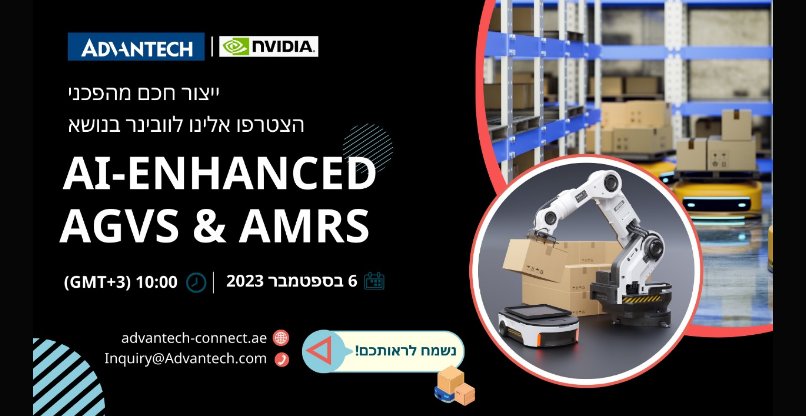 הירשמו עכשיו, כדי להצטרף לסמינר האינטרנט הבלעדי שלנו, שבו המומחים של Advantech יציגו טכנולוגיה חדשנית המאפשרת ל-AGVs/AMRs לפעול בתנאים מגוונים ולבצע אופטימיזציה מתמדת של נתיבי הפעילות שלהם. על ידי אוטומציה של הובלת חומרים ארגונים, היכולה לייעל את הפרודוקטיביות ולתזמן משלוחים בצורה יעילה יותר, כדי להפחית צווארי בקבוק בייצור.