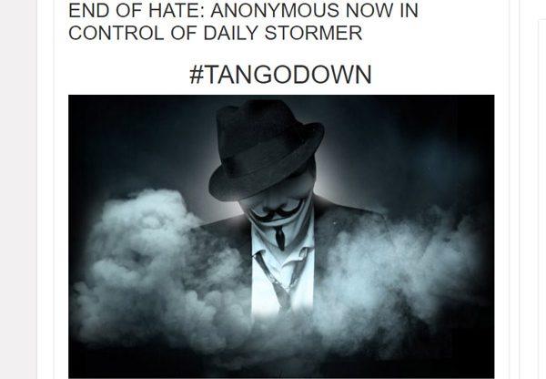 קבוצת אנונימוס (Anonymous) השתלטה על האתר הניאו-נאצי דיילי סטורמר (Daily Stormer). זאת, לאחר שמוקדם יותר היום (ב') הודיעה GoDaddy לבעלי האתר שהיא לא מוכנה לספק לו יותר את הדומיין.