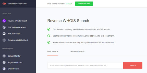 Domain Research Suite היא מקור מבוסס אינטרנט של מודיעין בנוגע לדומיינים, שכוללת שלושה מתוך ארבעת כלי החיפוש של WHOIS שהוזכרו בפוסט זה – WHOIS History Search לחיפוש היסטוריית WHOIS, וכן WHOIS Search לחיפוש WHOIS ו-Domain Availability Check לבדיקת זמינות של דומיין. בנוסף, הוא כולל חיפוש WHOIS הפוך.