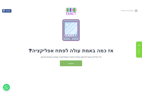 מחשבון האפליקציות של EXACT! הוא המענה בעבור כמה מהשאלות החשובות ביותר עבור העסק המודרני, שאלות שמשום מה נותרו ללא תשובה במשך שנים רבות. בעלי עסק רבים נהגו לפנות לנותני השירות, תוך תקווה כי אלו יעניקו להם מחיר מניח את הדעת – מבלי לדעת אם אכן מדובר בהצעה הגיונית, הוגנת ומקובלת. המחשבון שבאתר יאפשר כעת לכל אחד לדעת מה הם המחירים הנהוגים והשווי ההוגן לכל שירות – בדרך לשדרוג נוכחות הרשת שלהם, ובהקדם.