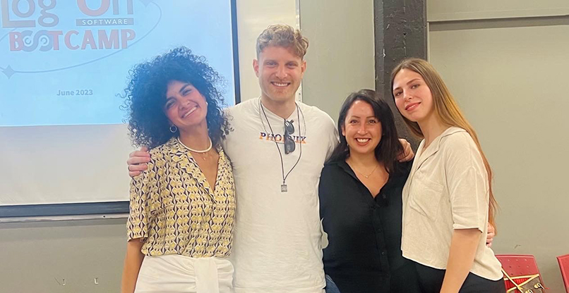 הראל ואנג'לה בוגרי הקורס, דנה אבואף ראש צוות הגיוס, וגל ביטון, ראש צוות גיוס דיגיטלי, בלוג-און. צילום: לוג-און תוכנה