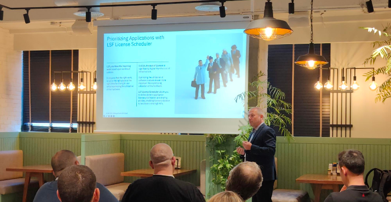 ביל מקמילן, מנהל המוצר העולמי של Spectrum Computing & HPC Cloud ביבמ, מדבר באירוע. צילום: יח"צ