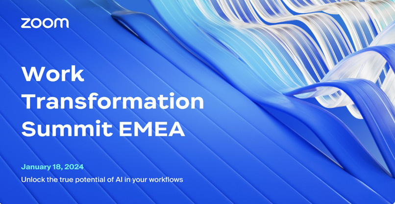 המפגש השנתי (והמסורתי) של חברת זום, המוקדש לתחום משאבי האנוש והעבודה בעידן החדש, ייערך השנה ב-18 בינואר 2024. ה-Work Transformation Summit EMEA יוקדש השנה רובו ככולו לדרכים המוחשיות לבניית אסטרטגיה מנצחת תוך שימוש בבינה המלאכותית.
