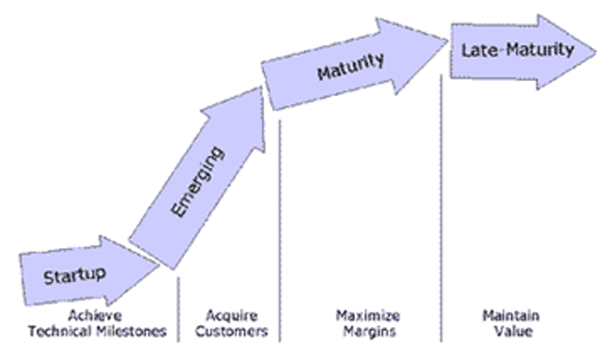 התפתחות הניהול ב-100 השנים האחרונות מתנהגת כגרף S טכנולוגי: המצאות גדולות בתחילת הדרך, פריצות דרך בהמשך והאטה לקראת הבגרות.