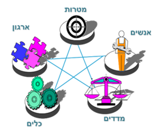 חשוב להדגיש לאורך כל התהליך חמישה גורמי מפתח שתנאי הכרחי הוא להבין ולהתייחס לגורמים אלו בזמן הניתוח, משום שהם פועלים במשולב וכל שינוי באחד מהם משפיע מיד על כל האחרים וכולם יחד על יעדי הארגון ותהליכיו.