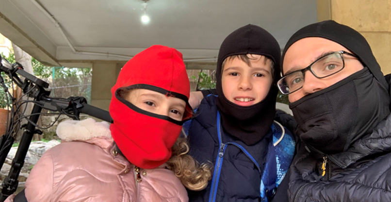יוצא עם הילדים לרכב על אופניים בדרך למסגרות. צילום: פרטי