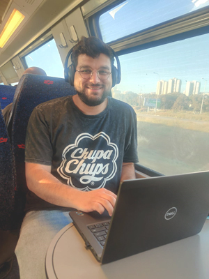 הרכבת יוצאת לכיוון המרכז – שזו נסיעה די ארוכה ומתישה אם לא מנצלים אותה היטב. אז, את זמן הנסיעה ברכבת אני לרוב מנצל כדי לעבור על כל מיני נושאים מעניינים שהוזכרו בעבודה ולא תמיד יש לי מספיק ידע לגביהם. הרי אני עובד עם צוות מוכשר מאוד של מפתחי אלגוריתמים, שתמיד מדברים על נושאים מעניינים, שבהרבה מקרים הם חדשים לי. אני מאמין ברכישת ידע בלמידה עצמית, ובטוח שככל שאדע יותר, אוכל לתרום יותר לתפקיד ולחברה. בנוסף, אני לומד כרגע קורס מורחב של שפת הפיתוח פיית'ון, ואני מנסה לנצל חלק מהנסיעה כדי לעבור על נושאים מההרצאות האחרונות בקורס וגם לתרגל, במידת האפשר.