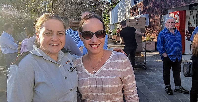 מימין: אל"מ (מיל') טלי כספי-שבת, לשעבר מפקדת שחר; אל"מ ריטה רייך, מפקדת שחר הנוכחית. שחר הוא בית התוכנה למערכות ארגוניות לניהול ותמיכת הלחימה של צה"ל, והוא פועל תחת יחידת לוטם. צילום: פלי הנמר