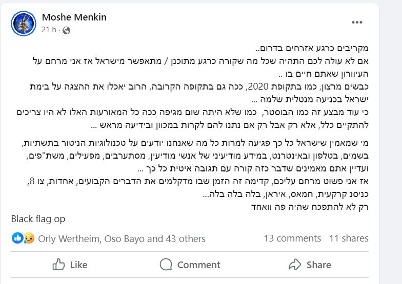 1/ תאוריה חסרת בסיס עובדתי על בוגדים/מרגלים מהצד של כוחות הביטחון/אזרחים מופצת ברשתות החברתיות, בזמן מלחמה מדובר בדבר מסוכן ביותר.
