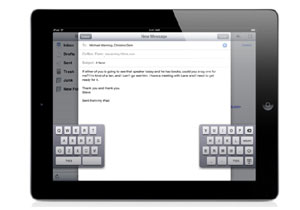 בתוך כך מעניין לציין, שאפל כבר הודיעה כי תשנה את תוכנת ההקלדה ב-iPad במערכת ההפעלה iOS 5 שתשוחרר במהלך השנה, כך שתכלול תכונה של חלוקת המקלדת לשני חצאים במצב החזקה רוחבי כדי להקל על הקלדה בשני האגודלים תוך החזקת המכשיר.