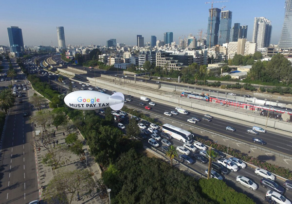 בלון עלה לאוויר במחאה על שגוגל אינה משלמת מסים בארץ