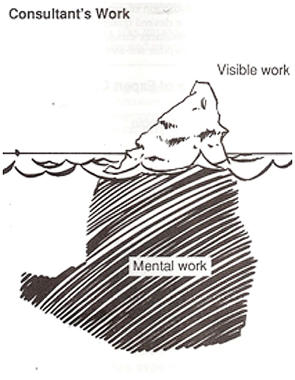 כדי להפוך הדברים למורכבים יותר, עבודת היועץ נראית כמו "קצה הקרחון" הנראה כך: