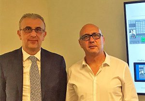 מימין: טל כהן, מנהל חטיבת ה-Sales Collaboration בטלדו, ו-ולריו לומברדי, מנהל מכירות אזור יוון, איטליה והמזרח התיכון בחטיבת ה- Trade and Command של בריטיש טלקום. צילום: אבי בליזובסקי