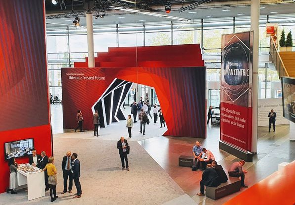 אזור תצוגת פתרונות בלוקצ'יין בכנס השנתי של פוג'יטסו. צילום: פלי הנמר