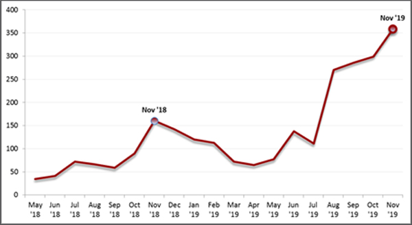מספר הכניסות בחודש הקניות ברשת לאתרי פישינג, המתחזים לאתרי רכישה אונליין, יותר מהוכפל ביחס לאותה תקופה ב-2018, עם עלייה של 233% ביחס לנובמבר אשתקד, כך על פי מחקר של צ'ק פוינט.