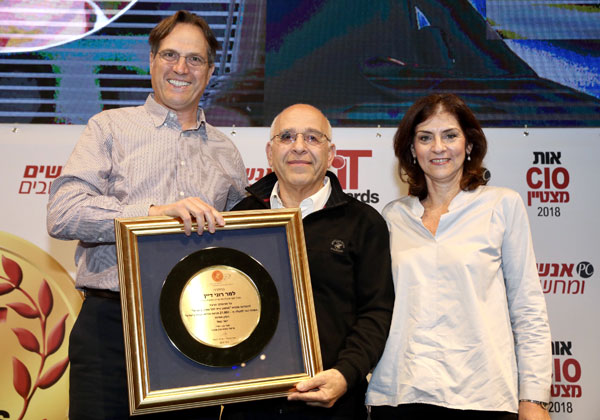 פרויקט מחשב לכל מורה מקבל מגן מיוחד בטקס מצטייני המחשוב של אנשים ומחשבים בשנה שעברה. מימין: דפנה תמיר, מנהלת הפרויקט; רוני דיין, לשעבר מנהל אגף הטכנולוגיות במשרד החינוך; ואורי בן ארי, נשיא ומייסד קרן אתנה, ויוזם הפרויקט. צילום: ניב קנטור