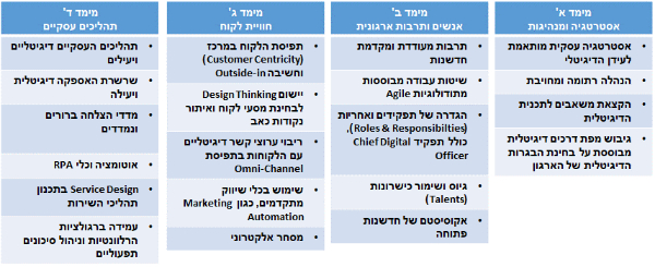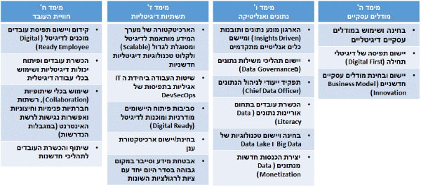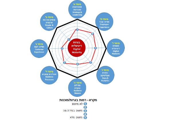 בגרות דיגיטלית היא מדד ארגוני המתאר את רמת המוכנות, ההיקף, העומק והאפקטיביות שבה הארגון משתמש בטכנולוגיות הדיגיטליות בביצוע עסקיו וביצירת היתרון התחרותי שלו ● חלק ב' של המאמר - נושאים להערכת המוכנות בשמונה ממדים