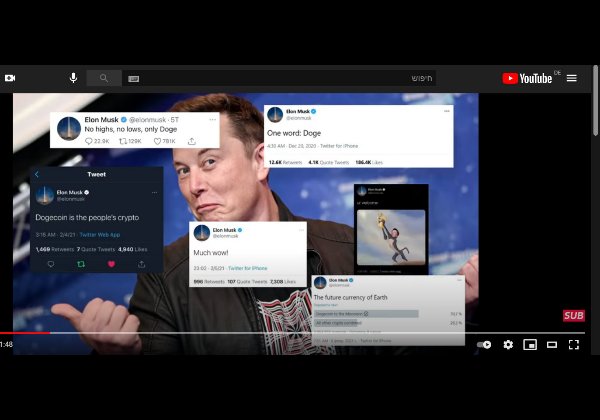 אילון מאסק מקדם את הדוג'קוין. צילום מסך מקליפ היוטיוב על המטבע