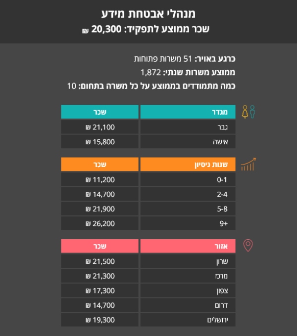 על פי הנתונים שלנו, ישנה עלייה משמעותית בכמות המשרות שבתחום אבטחת המידע. בשנים האחרונות חלה עלייה תלולה במספר התקפות הסייבר על ישראל, שהגיעה לשיאה בתקופת מבצעי "עמוד ענן" ו"צוק איתן" (אשר במהלכם בלבד דווח על עשרות מיליוני ניסיונות התקפה). כאמצעי התמודדות, ואף כאמצעי מנע, עלתה גם הדרישה למומחים ויועצים בתחום, הן במגזר הפרטי והן הציבורי.