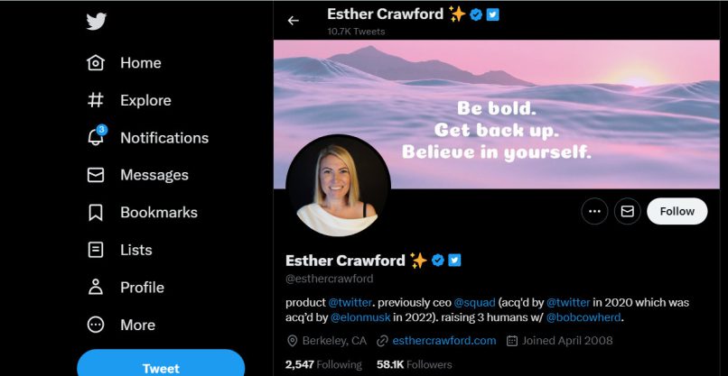 אסתר קרופורד, סמנכ"לית ניהול מוצר בטוויטר, שהייתה אחראית על ניהול תוכנית המנויים החדשה Twitter Blue.