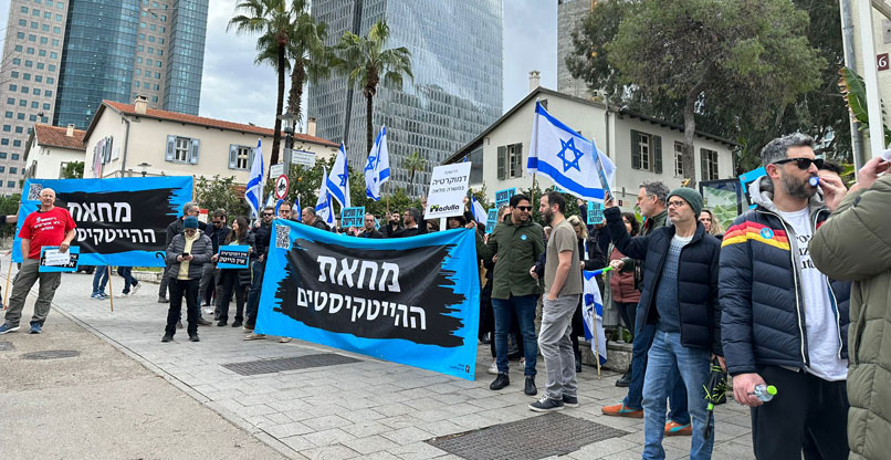 הפגנת ההיי-טקיסטים במתחם שרונה בתל אביב, נגד ההפיכה המשפטית. צילום: ענבל אורפז
