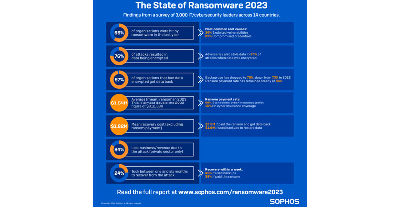 המחקר, "State of Ransomware 2023", נערך בקרב 3,000 בכירי אבטחת סייבר ומנהלי IT בחודשים ינואר עד מרץ השנה, ב-14 מדינות. מהמחקר עולה, כי כאשר ארגונים שילמו דמי כופר כדי לשחרר את הנתונים שלהם, הדבר גרם בסופו של דבר להכפלת עלויות השחזור – 750 אלף דולר בממוצע, לעומת 375 אלף דולר בקרב ארגונים שהשתמשו בגיבויים כדי לשחזר את נתוניהם. יתר על כן, תשלום דמי הכופר בדרך כלל הביא להארכה של זמן שחזור הנתונים. כך, 45% מהארגונים שהשתמשו בגיבויים השלימו את השחזור תוך שבוע – לעומת 39% מאלה ששילמו את דמי הכופר.