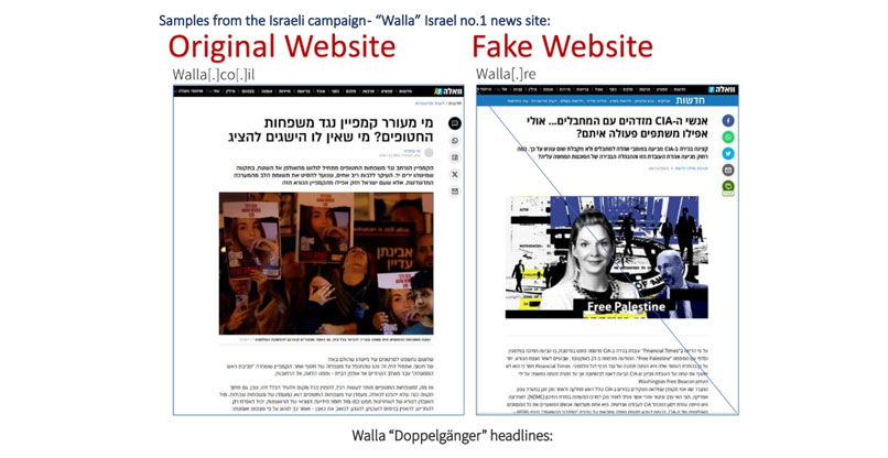 ההאקרים הפרו רוסיים אף העלו במהלך המסע שלהם אתר "וואלה" מזויף, עם כותרות בעברית, כגון: "אנשי CIA מתרועעים עם טרוריסטים, ואולי אף משתפים איתם פעולה" ו-"מדיניות ארה"ב יוצרת הסחה באגפי שמאל וימין בישראל". באתר מזויף שהם יצרו למגזין ליברל פורסמו, גם כן בעברית, כותרות שקשורות למלחמה בין ישראל לחמאס: "חילופי בני ערובה הם מלכודת חסרת סיכוי", "עדויות חדשות לשיתוף פעולה בין אוקראינה לחמאס", "המלחמה הפכה אותנו לעניים ב-40%" ו-"ארה"ב בוגדת בישראל כפי שבגדה באוקראינה".