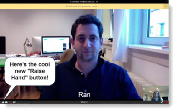 המשתתפים יכולים לראות או לשמוע רק את המציג. האחרים יכולים "להרים יד" כדי לבקש רשות דיבור. זו יעיל מאוד כאשר יש מספר רב של משתתפים או כאשר רוצים לבדוק ידע מול כל אחד.