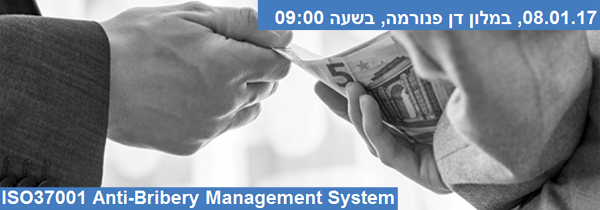 לקראת אירוע - Anti-Bribery Management System, יום א' 8 בינואר, מלון דן פנורמההאם בארגון שלך נותנים או מקבלים שוחד?