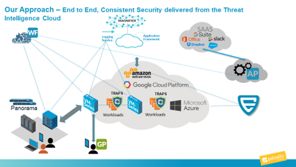 כפי שניתן לראות מהציור לעיל, לפאלו אלטו פתרונות מתקדמים בכל אזור שבו המידע הארגוני נמצא. אם לא מגנים על המידע הארגוני בענן באותה הקפדנות שבה מגנים על המידע בחצר הארגון, זה דומה להתקנת מנעול בטחון בדלת והשארת חלונות פתוחים. חייבים להגן על המידע הארגוני בכל מקום שבו הוא נמצא.