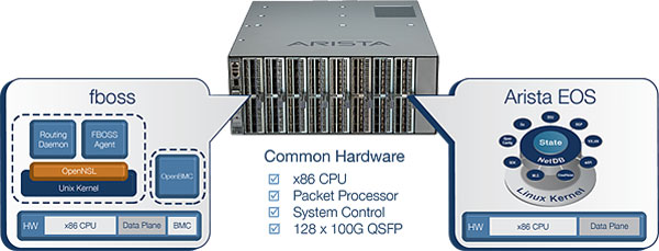 דוגמה לשיתוף פעולה אדוק ויצירת פלטפורמה אחידה ופתוחה ניתן לראות בפלטפורמת Arista 7368X4. במהלך השנה האחרונה, צוותי מהנדסים של אריסטה ופייסבוק שיתפו פעולה עם דרישות ברמת מערכת ועם מאמצי פיתוח מקבילים, והעניקו יכולת ניהול מלאה באמצעות FBOSS (ר"ת Facebook Open Switching Software). הדבר מאפשר לפייסבוק לייצר אחידות ברשת לצד הכוח של EOS – מערכת ההפעלה של אריסטה, והניהול בזמן אמת של CloudVision – מערכת הניהול והניטור של אריסטה.