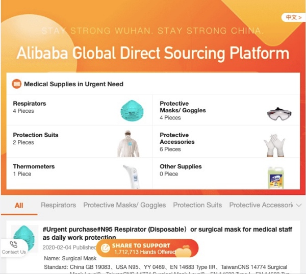 קבוצת עליבאבא, הבעלים של ענקית המסחר עלי אקספרס, הודיעה ביום ה' כי היא משיקה פלטפורמה אשר תסייע באספקה מואצת של ציוד רפואי דחוף, על ידי חיבור ישיר בין ספקי ציוד רפואי ברחבי העולם לבין צוותי רפואה הנמצאים במוקד התפרצות נגיף הקורונה.