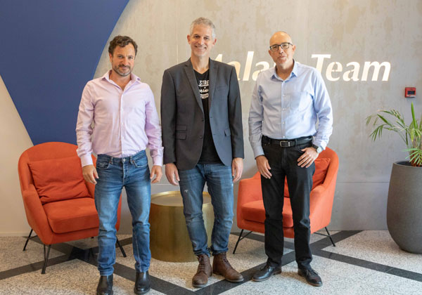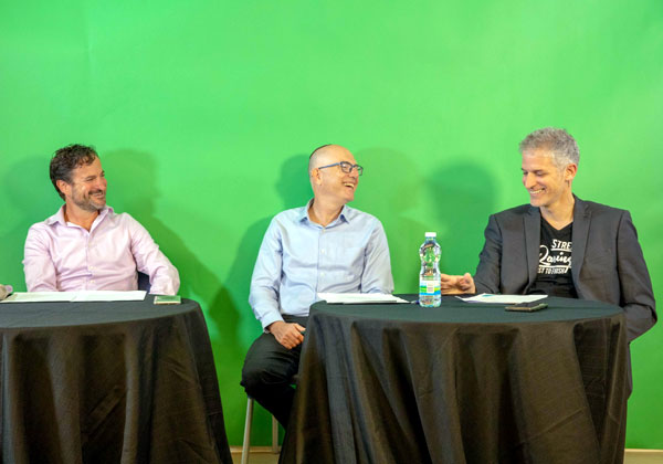 מימין: הסטנדאפיסט והיוצר רשף לוי, מנחה האירוע, אודי וינטראוב, מנכ"ל מלם תים, ואורן שגיא, מנכ"ל סיסקו ישראל. צילום: רמי לוי