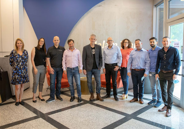 אודי וינטראוב, מנכ"ל מלם תים, הסטנדאפיסט והיוצר רשף לוי, מנחה האירוע, ואורן שגיא, מנכ"ל סיסקו ישראל, יחד עם בכירים נוספים שהשתתפו באירוע. צילום: רמי לוי