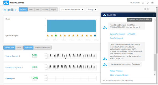 Marvis conversational interface – מדובר בשיפור למסייע הרשת הווירטואלי של ג'וניפר, שמאפשר לצוותי ה-IT לקבל תשובות בזמן אמת לשאלות בשפה רגילה, כמו: "מה לא היה בסדר בשיחת הזום של גיא אתמול?" מסייע IT אינטראקטיבי זה עוזר לתובנות רשת ופתרון בעיות: