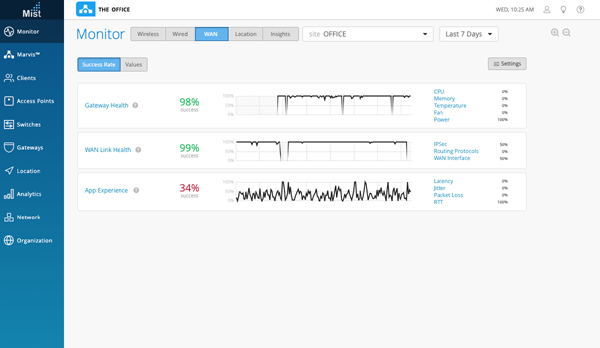 Juniper Mist WAN Assurance – תובנות מוּנעות AI עבור ה-WAN והסניפים לפתרונות ה-SD-WAN הקיימים של ג'וניפר, כדי להעביר את המיקוד מהתנהגות הרשת והיישומים לחוויית המשתמש. שירות מבוסס ענן זה: