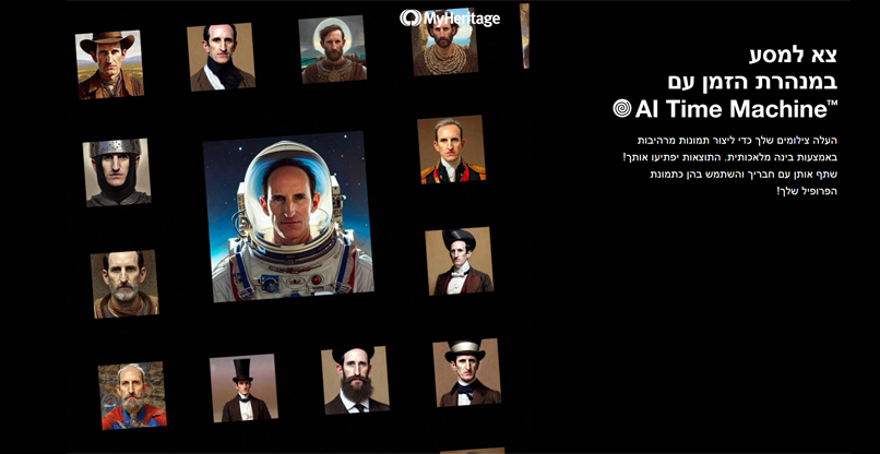 מיי-הריטאג' (MyHeritage) הפועלת בתחום חקר וגילוי ההיסטוריה המשפחתית, השיקה היום את ה-AI Time Machine – יישום חדשני שיוצר תמונות של אדם בתקופות זמן שונות לאורך ההיסטוריה באמצעות טכנולוגיית AI והמרת טקסט לתמונה.