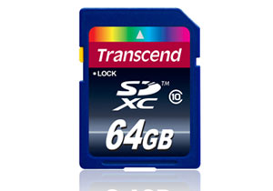 כרטיס הזיכרון, בעל תקן SDXC, המסוגלות לתמוך בנפחים של עד 2 טרה-בייט. זהו התקן המתקדם ביותר והוא השלב הבא לאחר תקן ה-SDHC המספק נפח אחסון ברמה של עד 32GB. כרטיס ה-64GB SDXC של Transcend מסוגל לאחסן עד 26,208 תמונות (בהתבסס על תמונות בגודל 5 מגה פיקסל בפורמט JPEG) ו-352 שעות של צילום וידיאו איכותי (MPEG-4 בנפח 384kbps) או 640 דקות של שידורי ווידאו של 1920X1080 באיכות HD. בזכות השימוש במערכת קבצים מסוג exFAT התומכת בקבצים הגדולים מ-4GB, כרטיסי ה-SDXC של Transcend הם המרכיב האידיאלי לשימוש במצלמות ה- DSLR ומצלמות ה-HD.