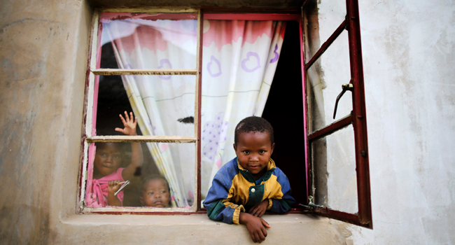 ילד דרום אפריקאי מביט מחלונו במהלך הלוויתו של נלסון מנדלה. צילום: Christopher Furlong,  באדיבות Getty Images
