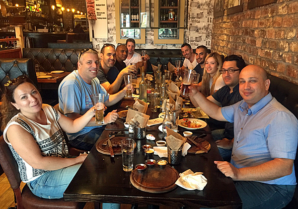 בארוחת הערב: מימין – דודו אדי, מנכ"ל מוביליטי פרו; דודי אליאב, מנהל הטכנולוגיות הראשי והמייסד של דאבלדו מבית מוביליטי פרו; פולה גצקין, מנהל המשרד של החברה; שימי דוינו, ראש צוות פיתוח הנגשה; יעקב מושניק, ברק גולן, אשר אבבה ורן דיסקין – אנשי פיתוח; אריה ברקוביץ', סמנכ"ל המכירות של מוביליטי פרו; ורינת עדי, מנהלת לקוחות ושותפים עסקיים הנגשה ישראל ב-Make Sense