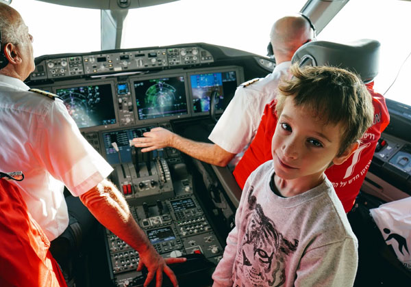 ליאון בן "התגנב" לתא הטייס של הדרימליינר באר שבע (הדלת הייתה פתוחה). צילום: הסבא, פלי הנמר