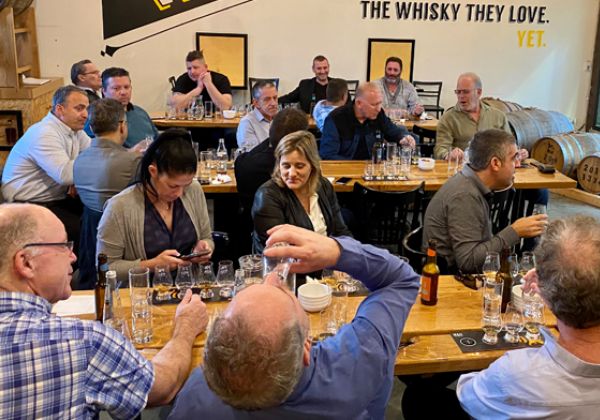 טועמים סוגי וויסקי מתוצרת כחול-לבן, במזקקת H&M. צילום: יח"צ