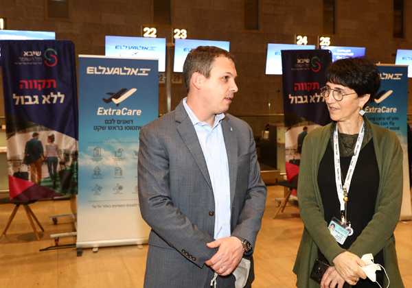 מנכ"ל אל על, אביגל שורק, ופרופ' גילי רגב מבית החולים תל השומר בנמל התעופה בן גוריון. צילום: סיון פרג'