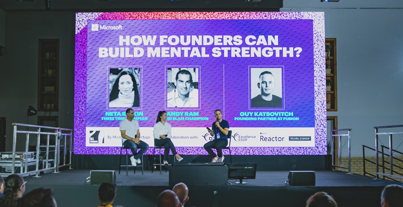מימין: גיא קצוביץ', מייסד שותף של Fusion LA Early Stage VC, שהנחה את הפאנל על בניית חוזק מנטלי, והספורטאים נטע ריבקין ואנדי רם. צילום: ויקטור לוי, ארט פוטוגרפי