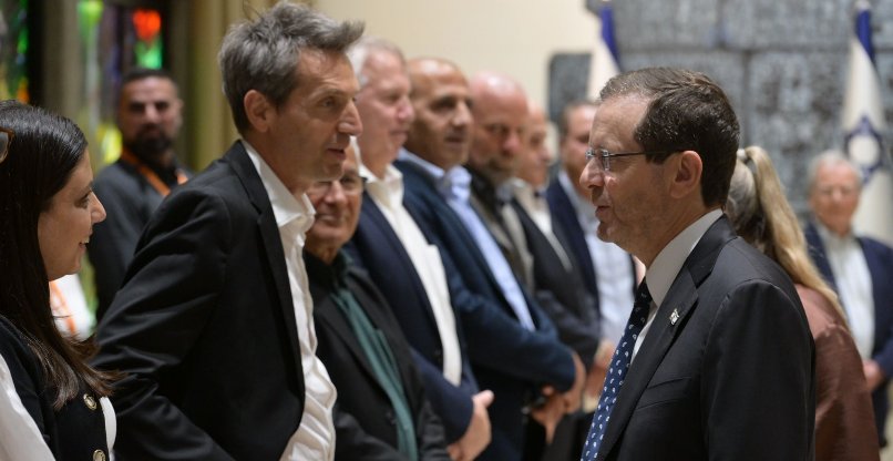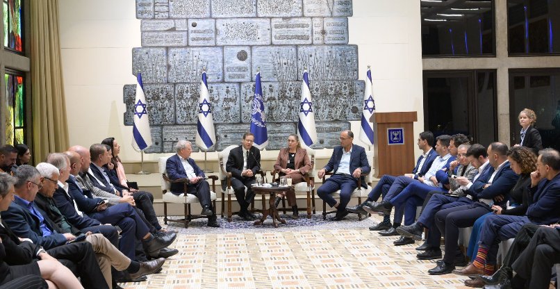משתתפי מפגש קו אימפקט עם נשיא המדינה, יצחק הרצוג. צילום: עמוס בן גרשום/ לע"מ